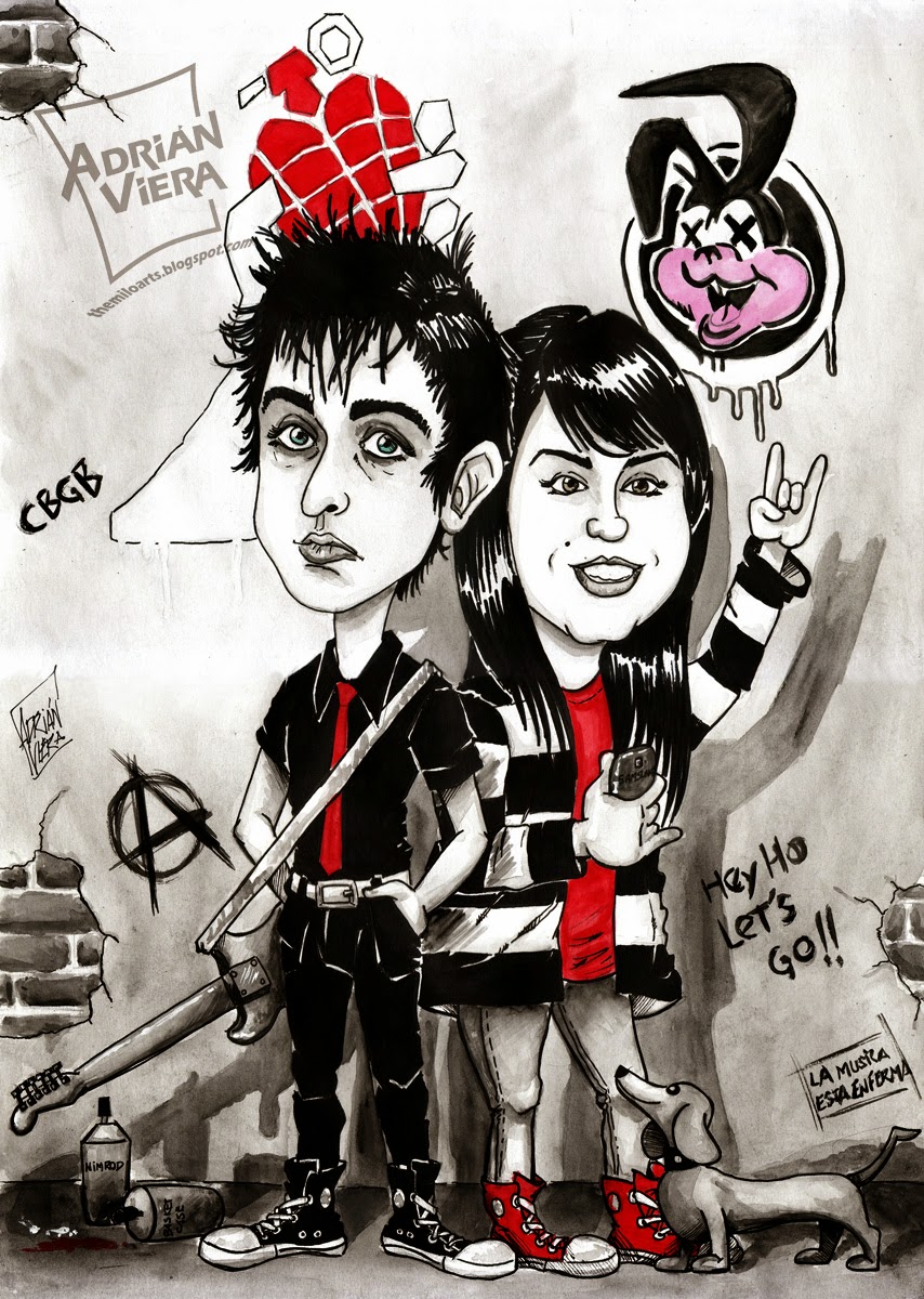 Caricatura de una fan de Green Day con Billy Joe incluido.
